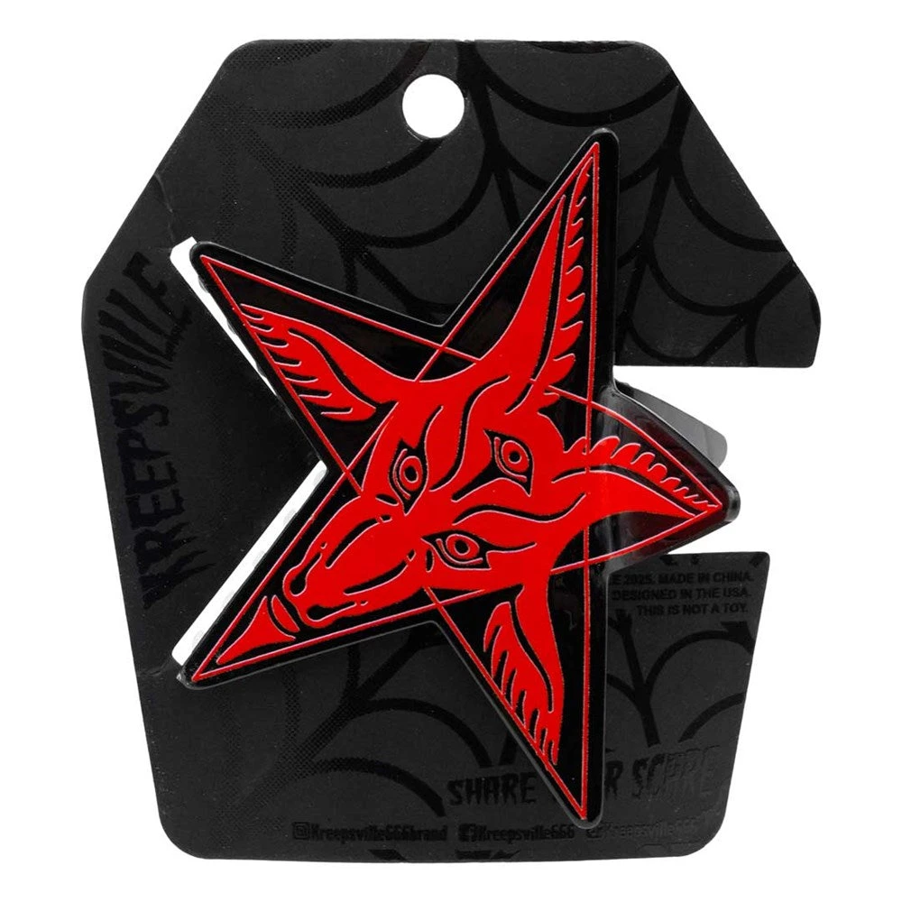 Give bad hair days the eternal damnation they deserve with Kreepsville’s Baphomet Star Claw Clip! This hellish hair accessory features Baphomet on a pentagram shaped clip perfect for completing a devilish up-do. Made from a durable acrylic with a sturdy spring to hold your locks in place to hell and back. Clip size approx: 4.2″ (10.7cm) x 3.5″ (9cm).