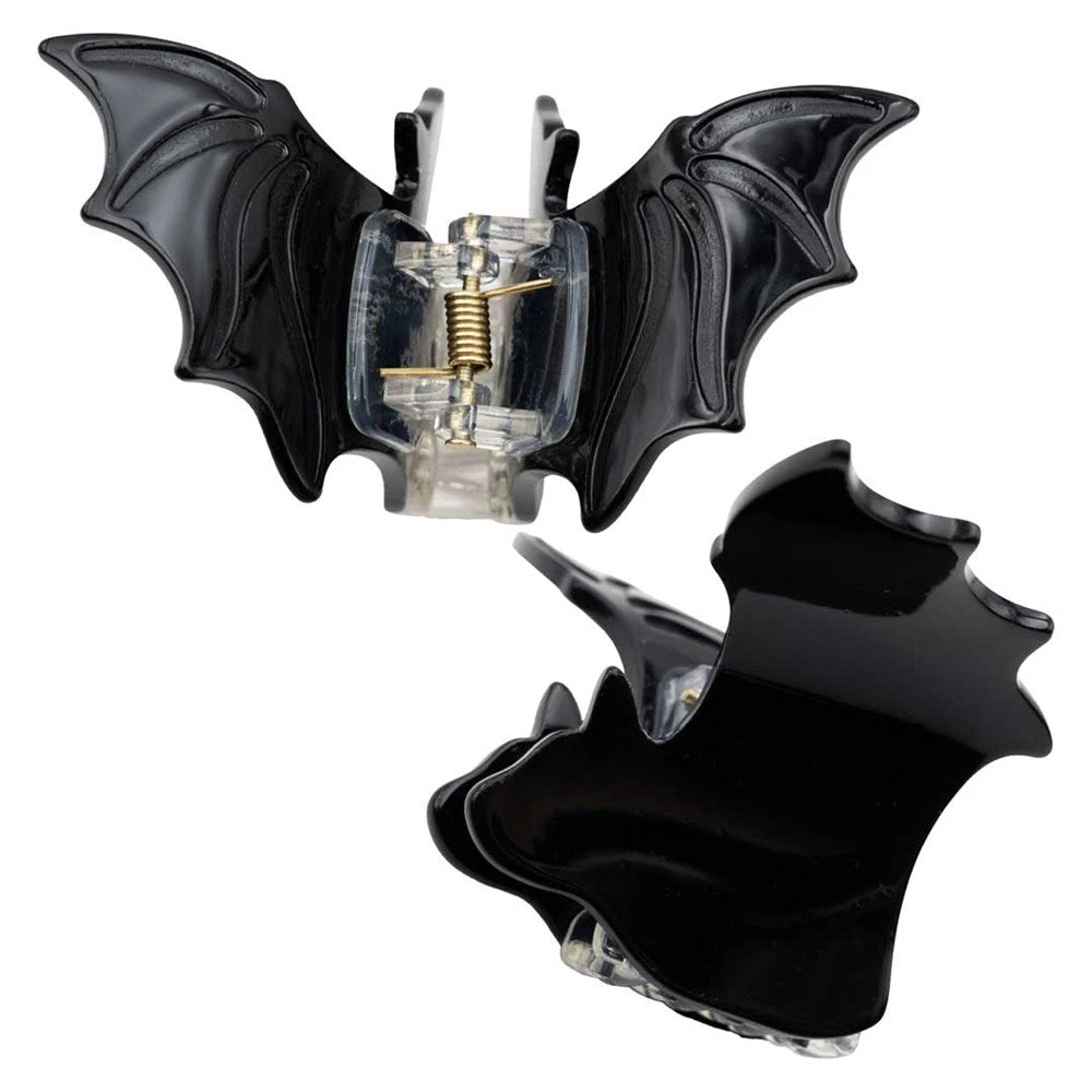 Turn any bad hair day into a bat hair day with Kreepsville’s Bat Claw Clips in black! This gothic inspired hair accessory comes in a set of two clips and is perfect for finishing off your dark look. Made from durable black acrylic and sized for less amounts of hair, half up half down or finishing of you spooky hair styles. No need to worry about it slipping out of your hair during a night out because these bat holds on tight. Clip size approx: 1.5″ (3.8cm) x 1.3″ (3.5cm).