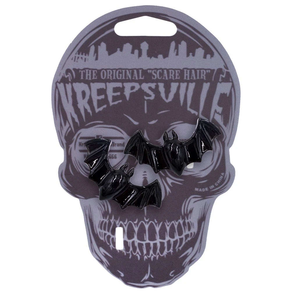 Kreepsville 666 Lil Black Bats Hair Slides Pair. add some batty accents to your hair with our black bat hair slide set appox. 2 in. each.