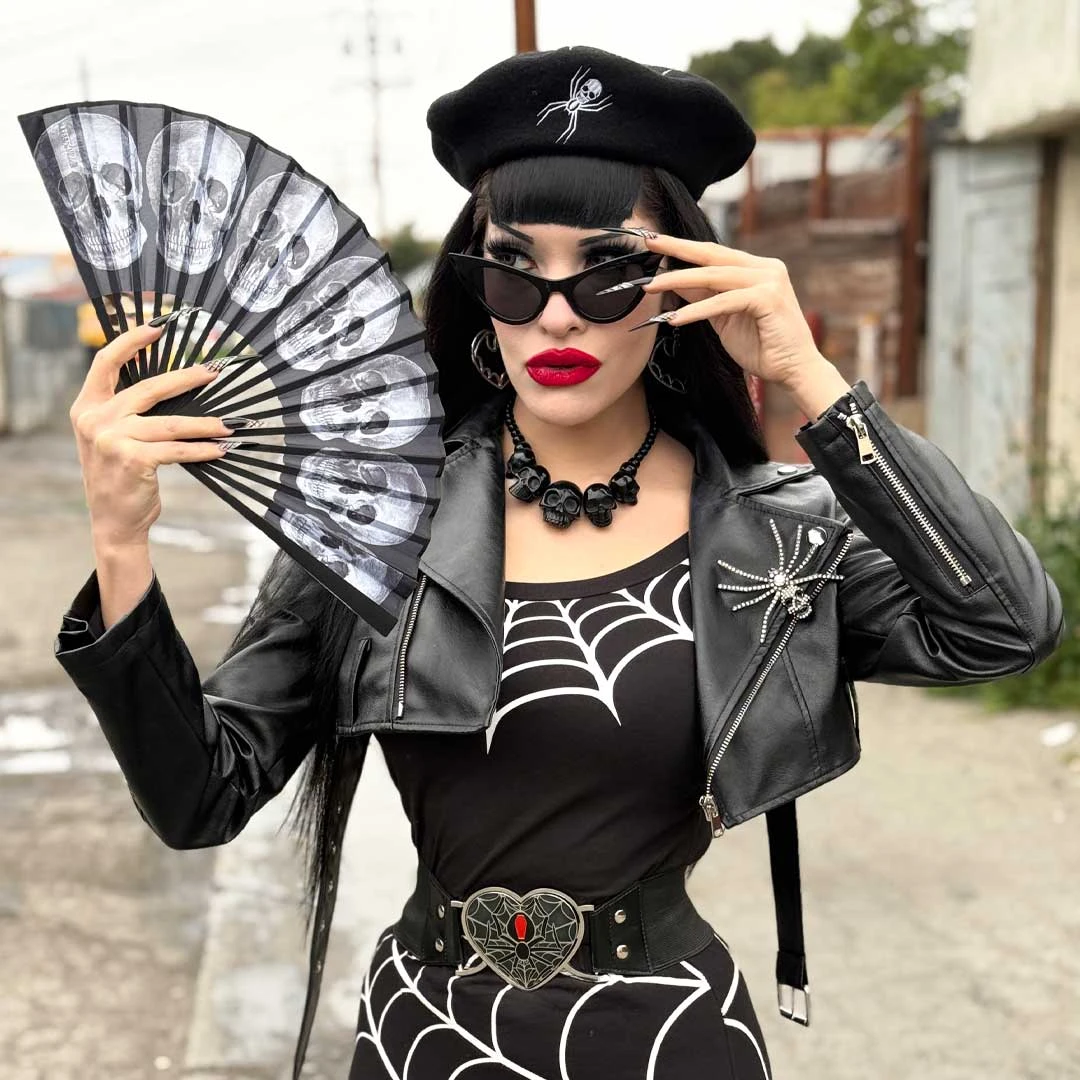 Unleash an aura of mysterious allure with the Spiderweb White Shoulder Top by Kreepsville. Features a chilling bone-white web detail on the neckline and sleeves printed on a scary soft 95% cotton and 5% spandex shoulder tee. The elegant shoulder top shape and printed sleeve details weave a flattering silhouette for all body types! Designed in California.